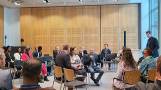 A discussion with representatives from government and business, including Annelise van der Merwe (South African Department of Trade & Industry), Rethabile Melamu (South African PV Industry Association), Morongoa Ramaboa (South African Wind Energy Association), Sabine DallโOmo (Siemens) and Jens Hauser (German Southern African Chamber of Commerce and Industry) then delved deeper into recent developments and opportunities in the South African energy market.